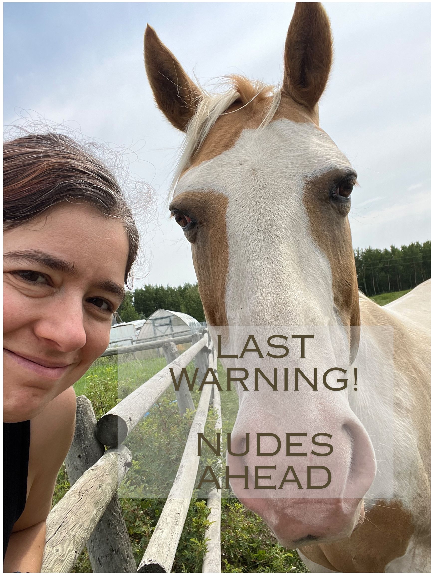 Funny selfie of Star and her horse Ollie with a NSFW warning